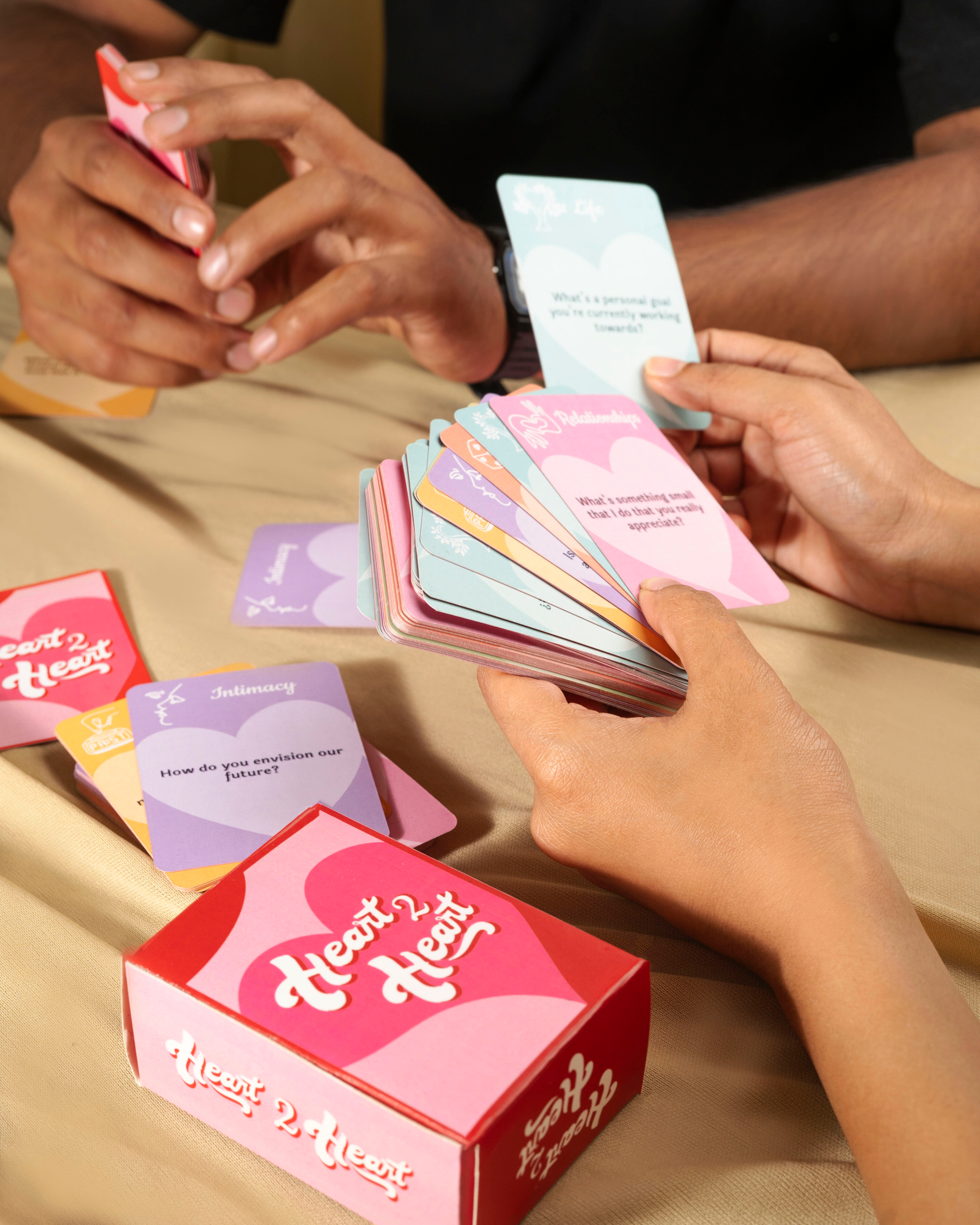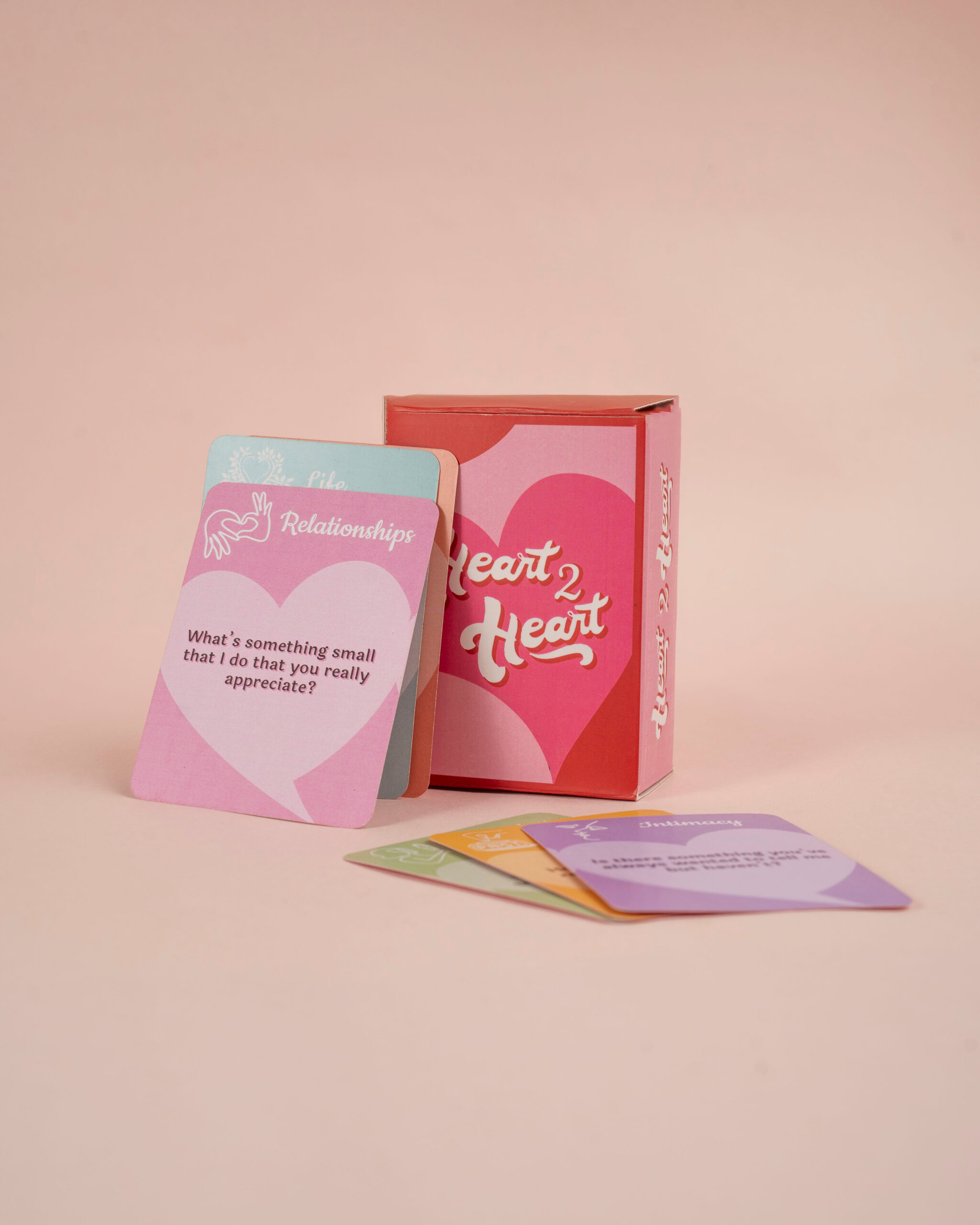 “Heart 2 Heart” is an intimacy deck card game designed specifically for couples to deepen their connection and strengthen their relationship. With over 70 cards, each featuring a thought-provoking question, this game encourages open communication, mutual understanding, and intimacy between partners.